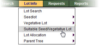 Suitable Seed/Vegetative Lot Search Screen |
