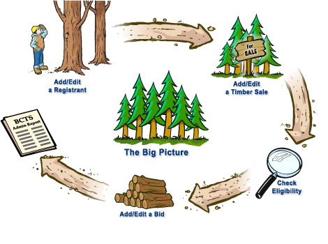 Welcome to the BCTS Admin Quick Start Tutorial - This tutorial will guide you through the process of using BCTS Admin. All users should begin the tutorial by completing the The Big Picture (click on the trees). If you have already completed this module, click on any of the other icons to begin the corresponding module.