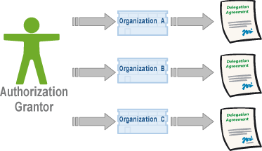 Agreements & Organizations If you have been delegated as an Authorization Grantor for a single organization, then acceptance of a single agreement may be required. However, if you have been delegated as an Authorization Grantor for multiple organizations, then acceptance of an agreement for each organization may be required. Therefore, you may find it helpful to think of Delegation Agreements as Organization Agreements. |